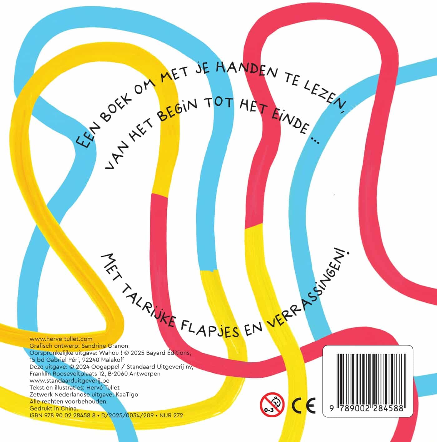 Auteur: Hervé Tullet Uitgever: Oogappel ISBN: 9789002284588 Thema: flapjesboek // interactief // handen Taal: Nederlands Publicatiedatum: september 2025